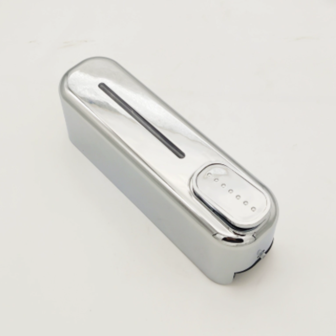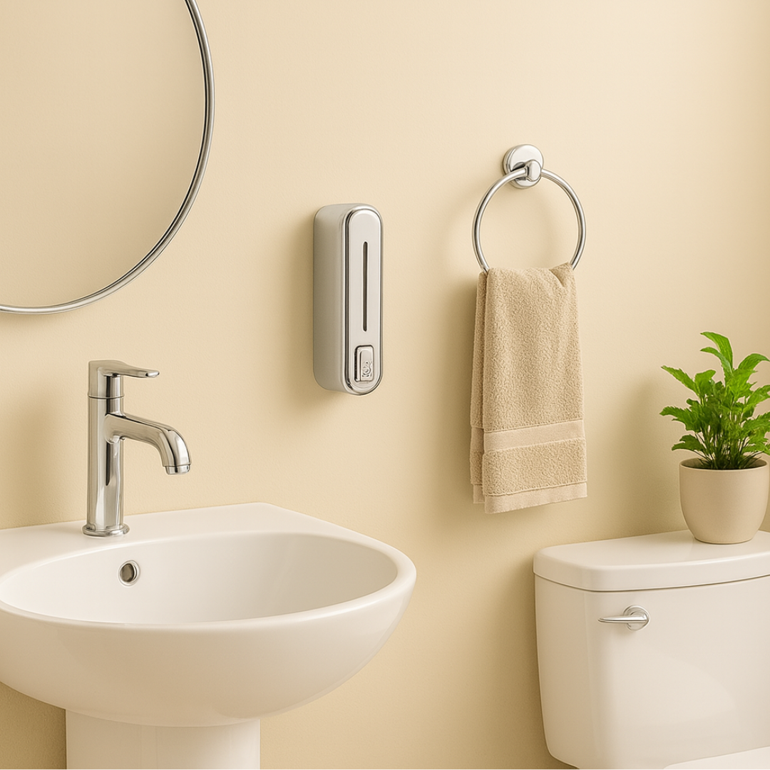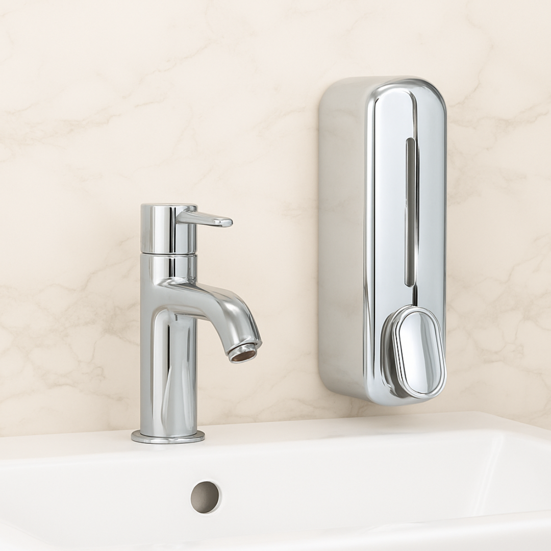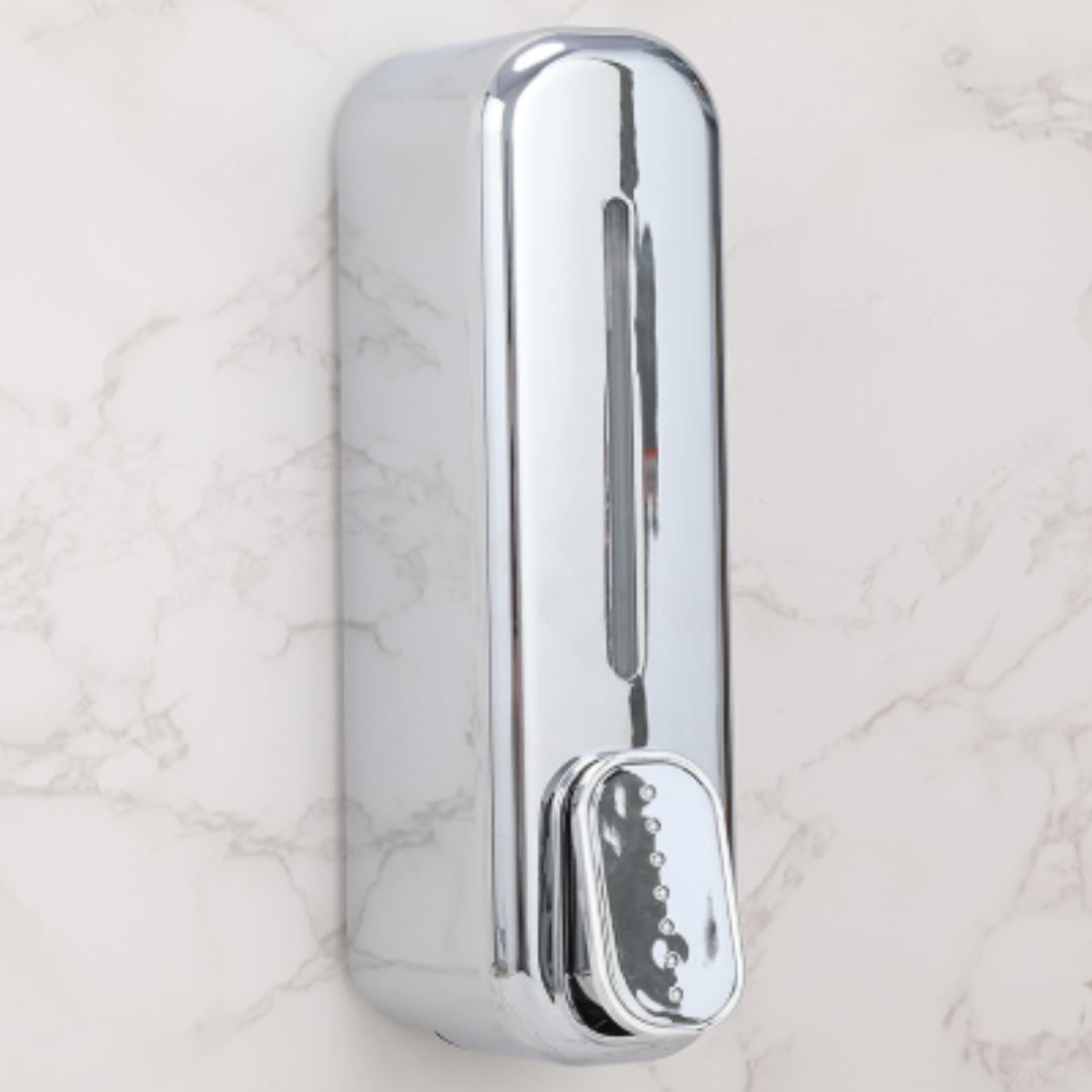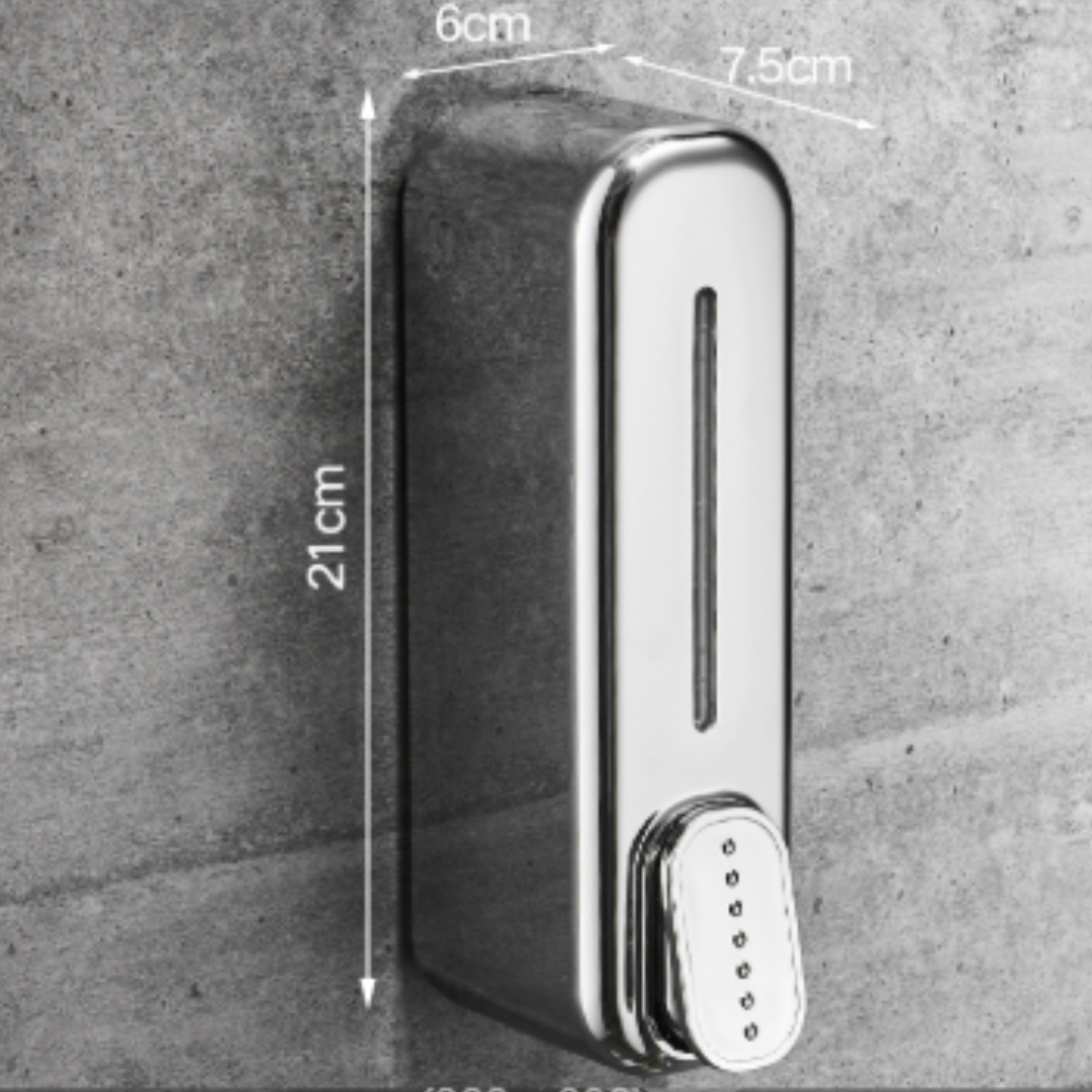Diseñado con líneas elegantes y minimalistas, este dispensador de pared combina estilo y practicidad a la perfección. Su acabado platado brillante con detalles cromados aporta un toque sofisticado que se adapta a cualquier decoración contemporánea. Además, cuenta con una ventana frontal transparente que te permite ver fácilmente el nivel del jabón, evitando sorpresas.